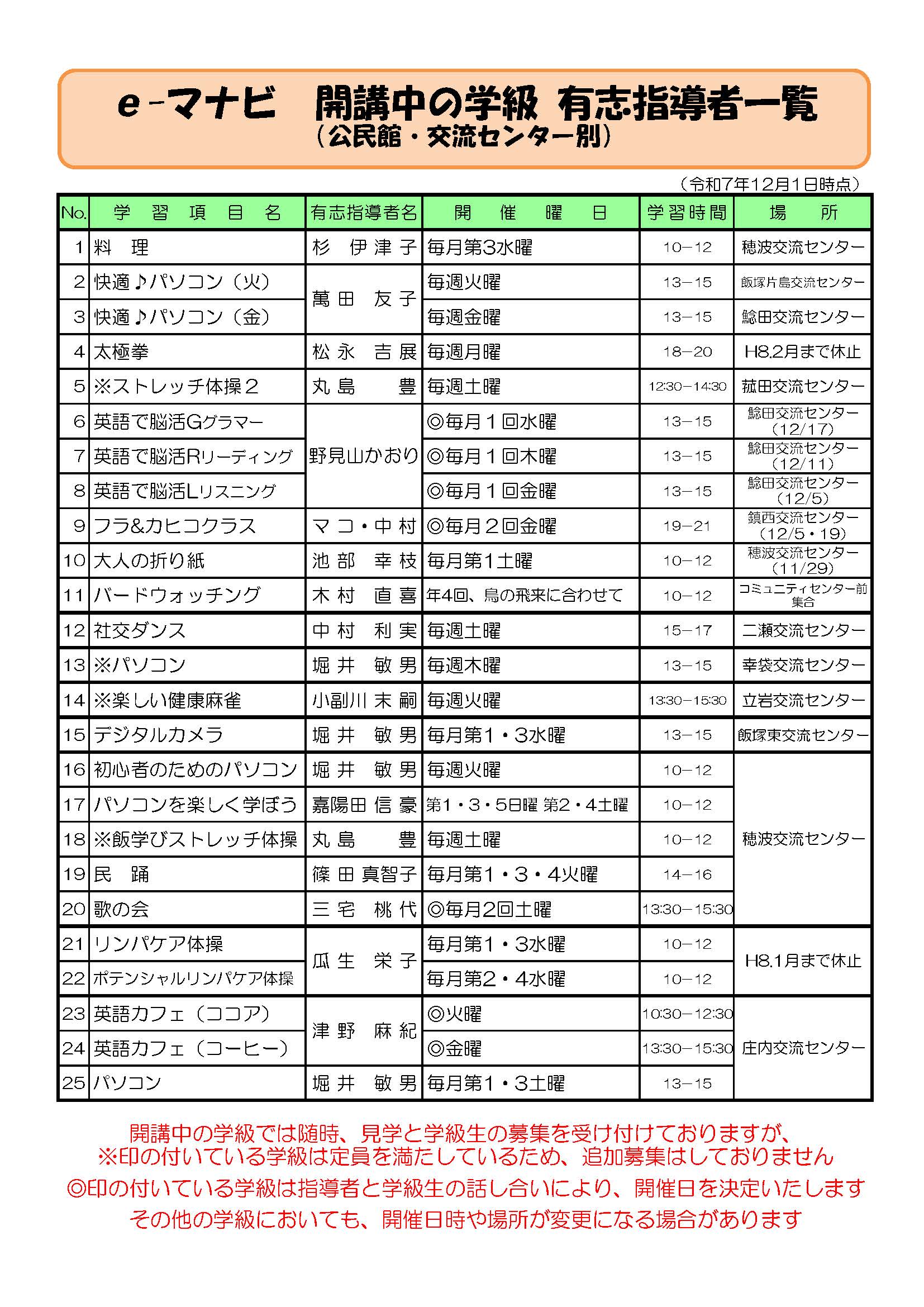 「e-マナビ」講座 有志指導者一覧を更新しました